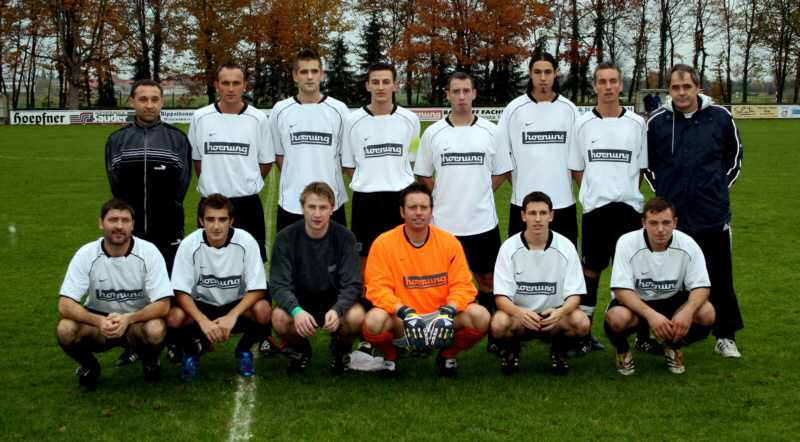 hinten von links: Eugen Lingor, Michael Bürkle, Steffen Hufnagel, Stefan Strentzsch, Kevin Wormer, Marco Junker, Marco Linder, Trainer Karl-Heinz Bluck